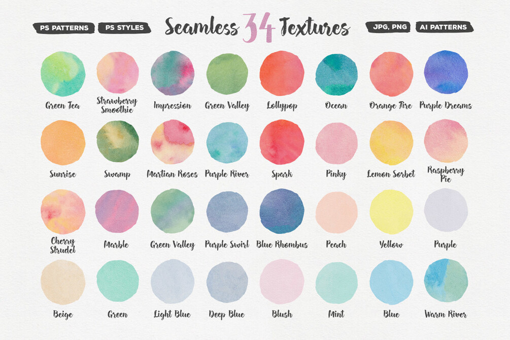 - 36 Seamless Watercolor & Paper Textures (JPG);