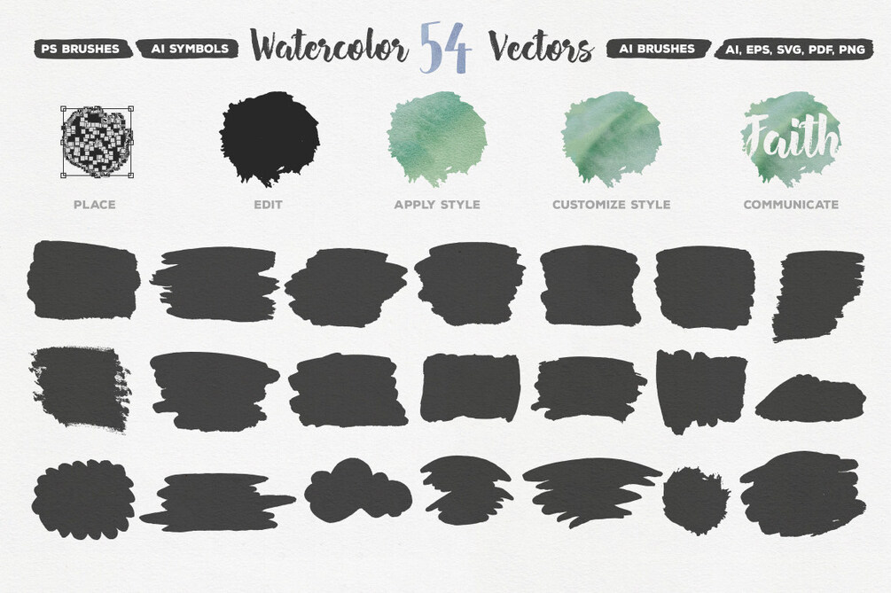 - 54 Vector Shapes (AI, EPS, SVG, PFD, PNG);