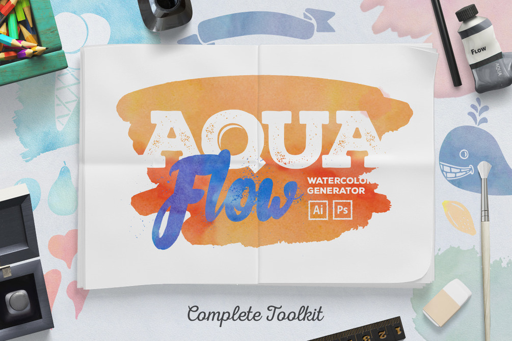 You don't have to be a skilled artist to create stunning watercolor artworks and designs! Not anymore, at least 😁 I'm happy to present you Aquaflow, a complete toolkit for Photoshop and Illustrator full of useful tools, resources, and assets that will help you to nail hand-made watercolor style, popular as never before.