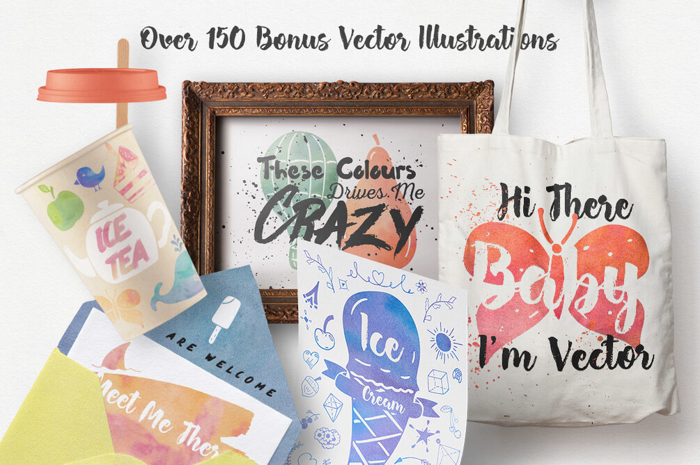 - 150+ Bonus Vector Illustrations (AI, EPS, SVG, PDF, PNG).