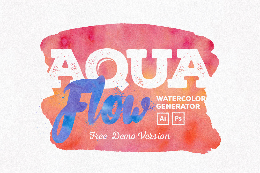 A free demo version of the Aquaflow Watercolor Generator, a complete artistic toolkit bringing high-quality assets and tools for Photoshop and Illustrator, designed to create stunning watercolor designs with ease and with no professional skills!