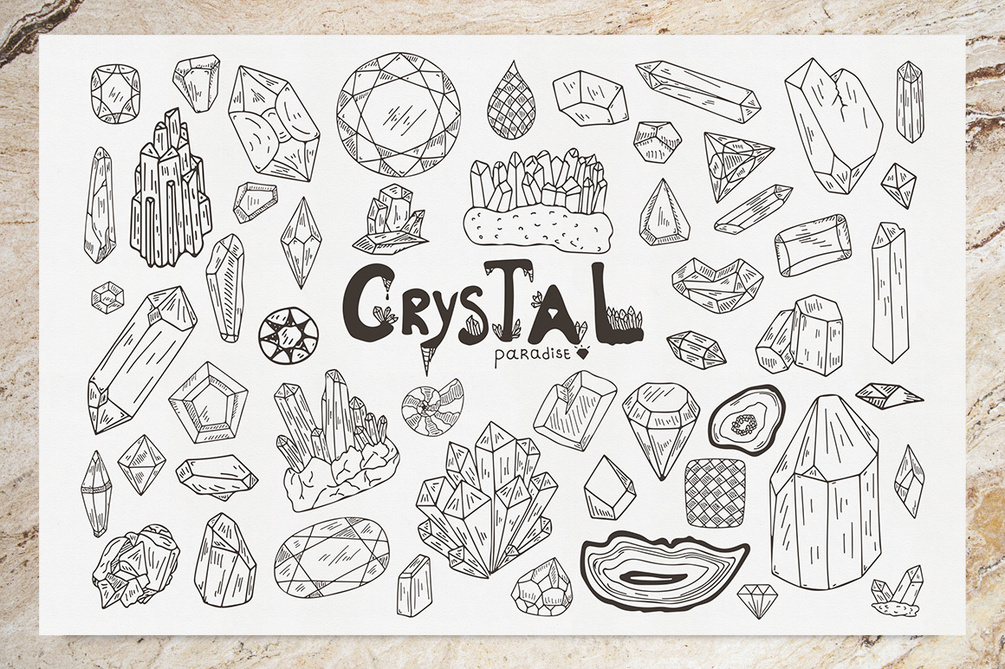 Download a free set of hand-drawn vector illustrations bringing crystals and minerals of all possible shapes.