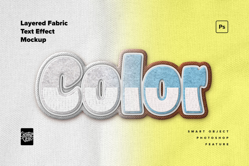 - Layered fabric text effect photoshop mockup template with neat organization.